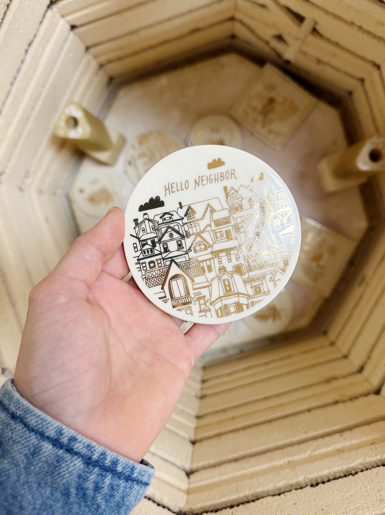 This heirloom-quality ornament would make a wonderful addition to your own collection, or thoughtful gift for someone special. All ornaments are crafted by hand with porcelain clay, glazed in a clear gloss, and finished with a 22k gold luster illustration. Each one comes gift wrapped in a small box.