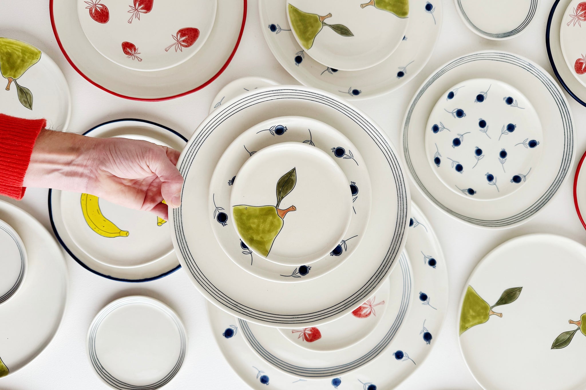 Every mini plate is handcrafted with porcelain clay, carved, inlaid with underglaze, decorated with a colored wash, and finished with a clear gloss glaze. Each piece is unique, with some variation, since every one is created and decorated by hand.