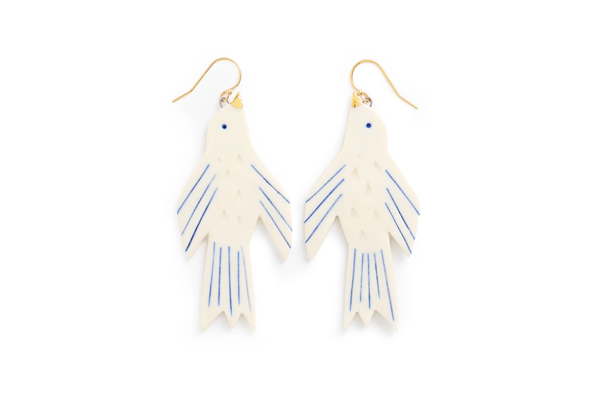 Both bold and delicate with fine lines and a gold luster beak, JVB designed these Little Swallow Earrings for our bird people. Swallows were symbols of good fortune and safe homecoming during nautical times. We hope our little swallows bring you the same on all your journeys.